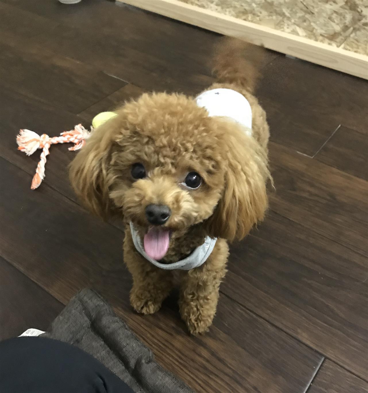今日は一時預かりのティーカッププードルのマロンちゃんがきてます♪