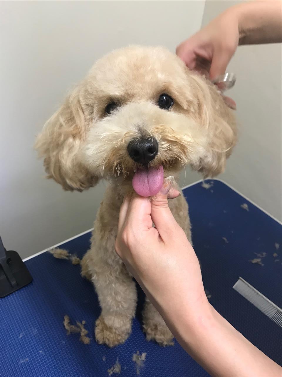 レオンくん、トリミング中もすごくお利口さんでスタッフにペロペロしてくれたり尻尾フリフリしてくれてスタッフの方が癒されました(*´▽`*)